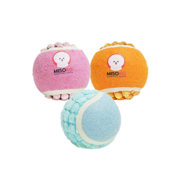 MISOKO toy for dogs, tennis balls, 7.5 cm, 3 pcs pink/orange/blue