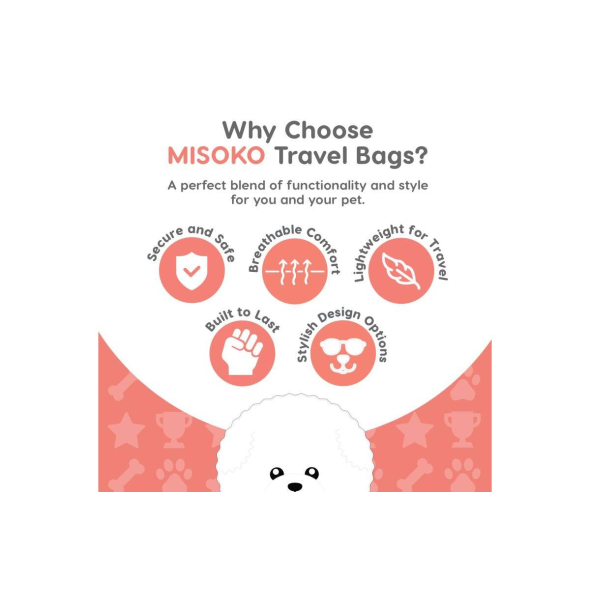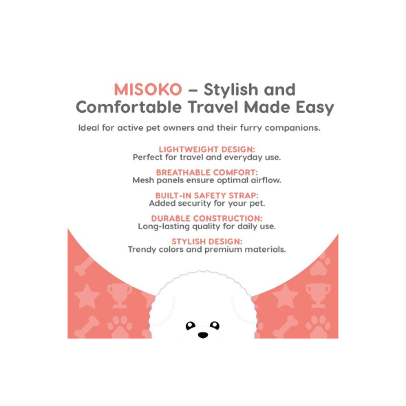 Stylish and comfortable MISOKO pet carrier, allowing your pet to travel with you – whether on a trip, to a show, or to the vet.