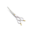 Tauro Pro Line Ultra Light curved scissors, made of the highest quality 440c grade stainless steel and aluminum, are characterized as an effective tool for coat and you can be sure that these scissors will last you for many years. This manufacturing technology ensures the highest quality – the scissors are extremely lightweight, ergonomic and designed for continuous, long-term use. With their user-friendly design, these scissors are easy to handle and become an indispensable tool for coat care. Stainless steel curved scissors are designed to trim the legs, chest, and other curved areas of the body of animals. Ergonomic design allows you to easily and safely cut the muzzle of the animal, around the eyes, ears, feet. Hands do not experience load, do not get tired, it is possible to easily control movements - due to the extremely high quality and very easy control, scissors of this line are the most popular among hairdressing masters. After each dog's haircut, it is necessary to clean the scissors. Act responsibly and carefully, protect scissors from sharp blows to hard coating, scissors damaged during impact may no longer be suitable for haircuts. With correct care of scissors – you need to sharpen much less often. Due to their length and 440c stainless steel construction with aluminum handle these durable scissors are an indispensable tool for cutting a pet's coat.