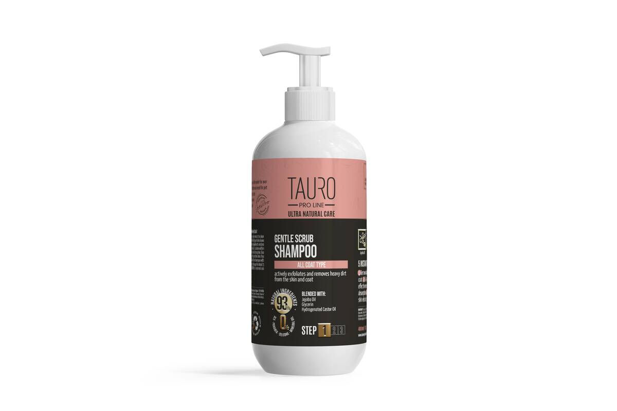 Ultra Natural Care Gentle Scrub Shampoo is the 1st step in a three-step cleansing system: is performed to remove dirt, excess sebum, dust particles, grime and excess skin and coat care products.