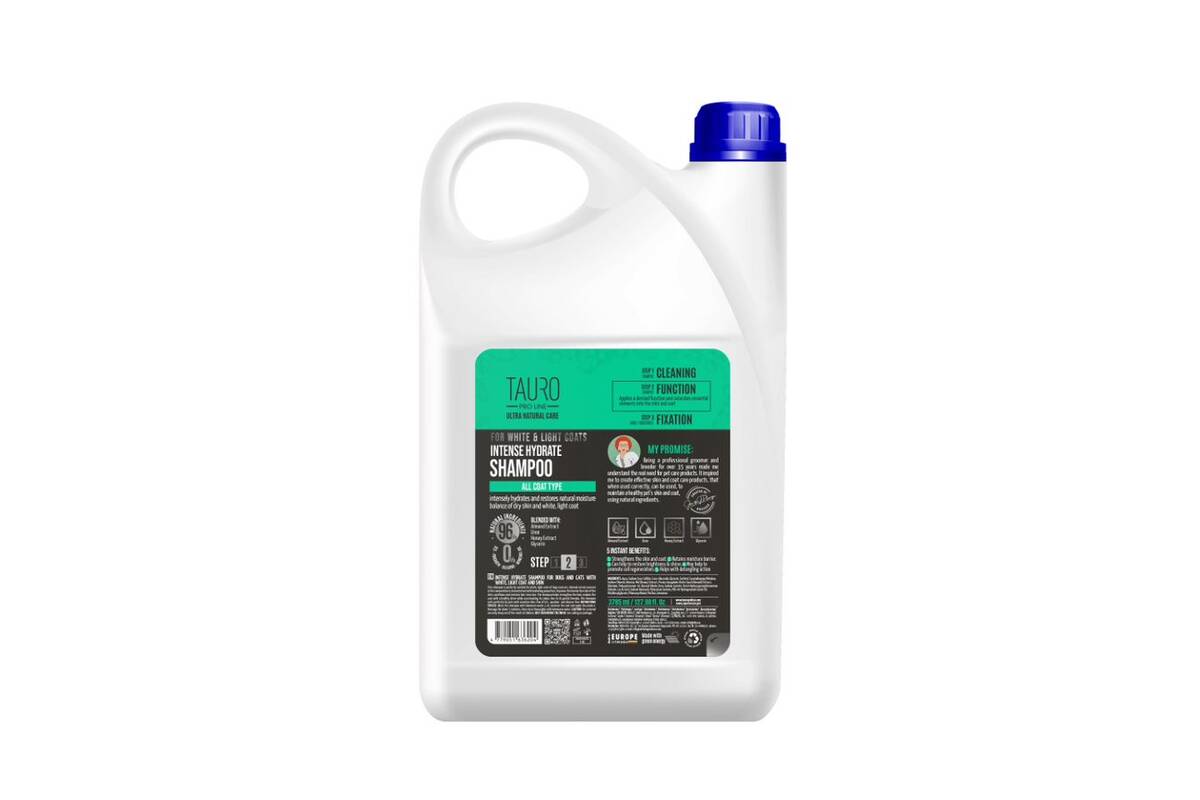 TAURO PRO LINE Ultra Natural Care intense hydrate shampoo for dogs and cats with white, light coat and skin 3785 ml