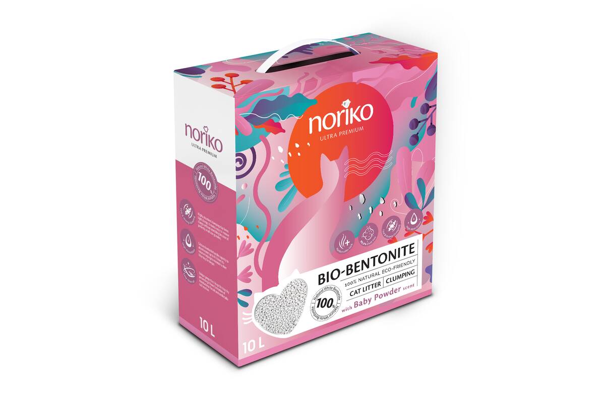 NORIKO ULTRA PREMIUM clumping cat litter of white bentonite with baby powder scent, 10l