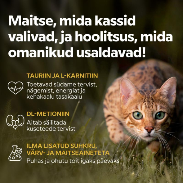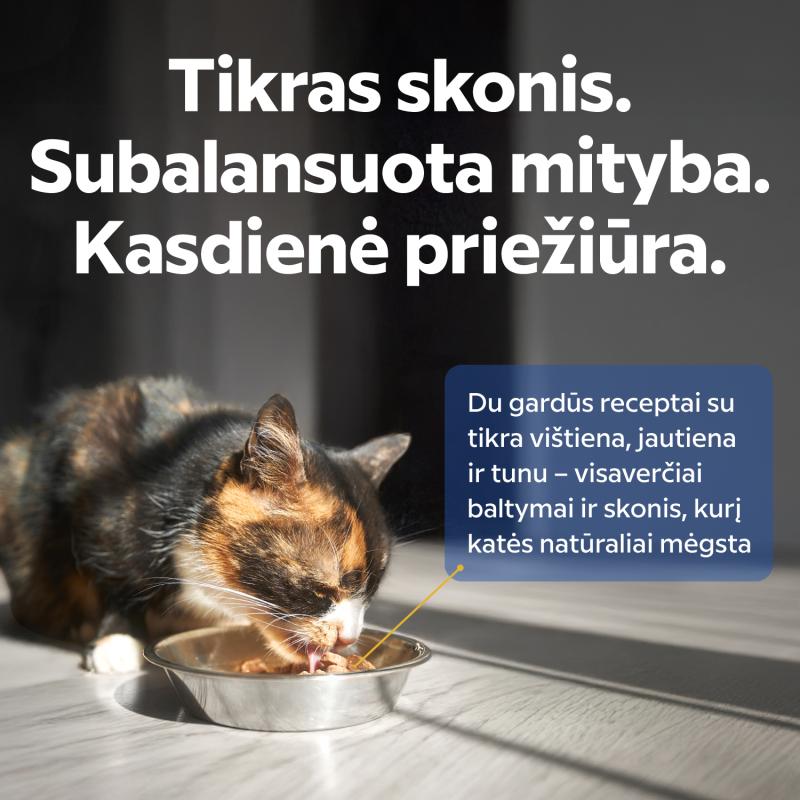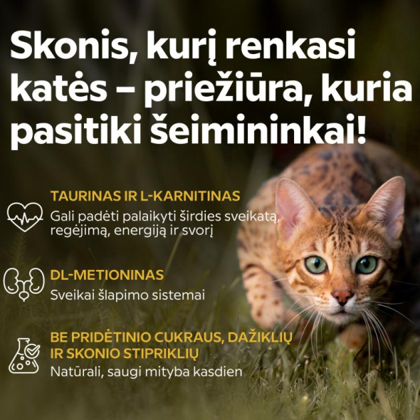 NATURAL AND SAFE. No added sugar, artificial colors, or flavor enhancers – just what you need for your cat's daily diet. Made in Lithuania in accordance with high quality and safety standards.