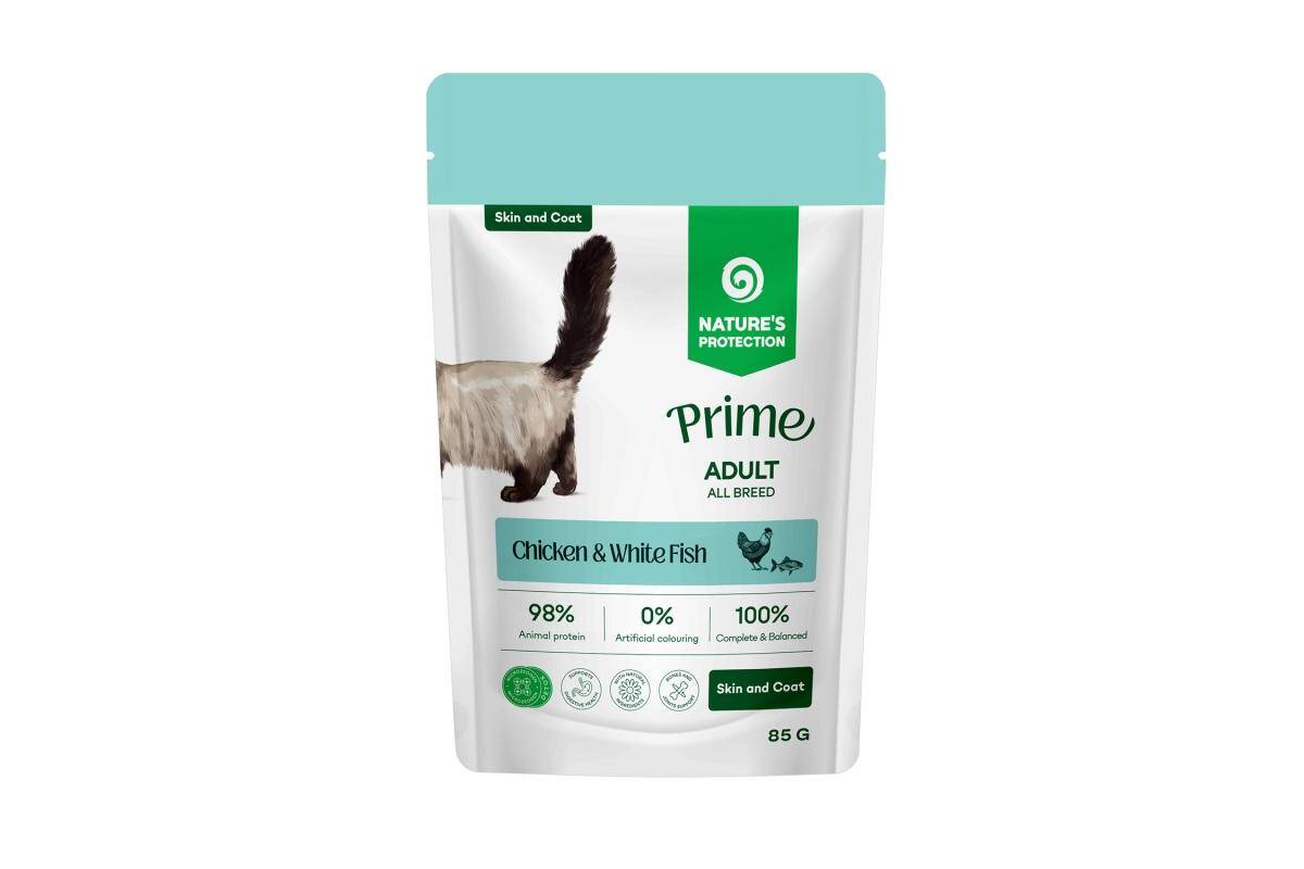 NATURE'S PROTECTION PRIME wet pet food with chicken and white fish for skin and coat of adult cats of all breeds 85 g