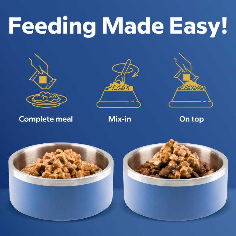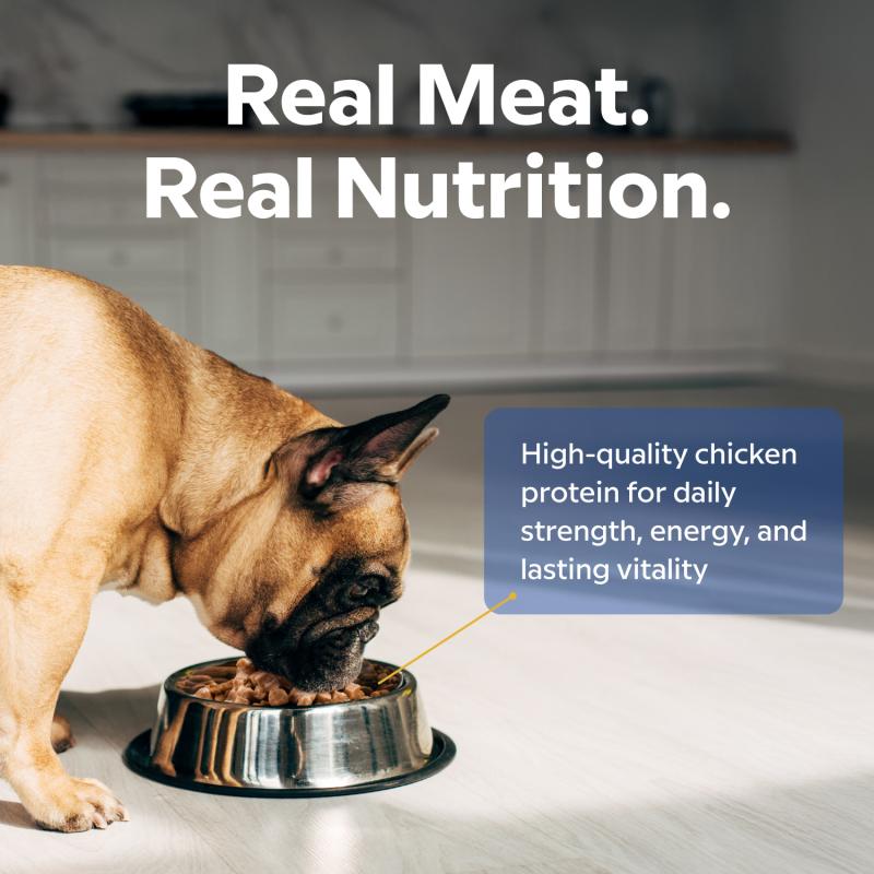 PIECES IN JUICY SAUCE. This food is designed to make your dog enjoy every bite. Chicken provides high-quality protein, which is necessary for muscle maintenance and energy. The sauce not only enhances the taste but also replenishes the body with fluids, which is especially important for dogs that drink less water.