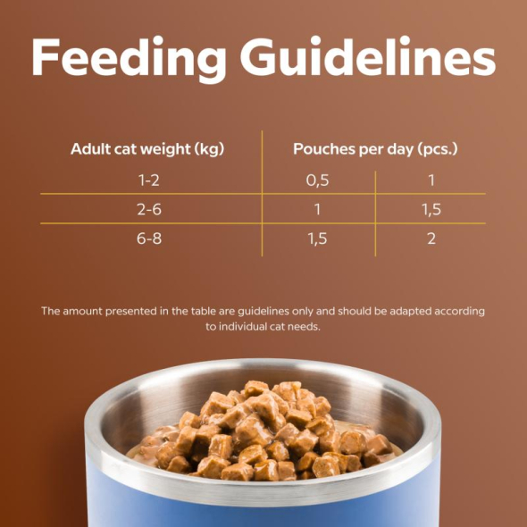 IMPORTANT ELEMENTS FOR DAILY HEALTH. Enriched with taurine, an essential amino acid necessary for a cat's vision, heart, and nervous system. Biotin ensures a shiny coat and healthy skin, while vitamins A, D3, E and minerals (iron, zinc, manganese, copper, iodine) support immunity, strong bones and overall balance in the body.