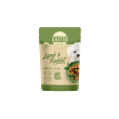 Complete wet food for young dogs with lamb and rabbit. Chunks in a sauce with glucosamine, fibre and herbs for growth, digestion and healthy joints.