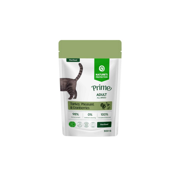 NATURE'S PROTECTION PRIME wet pet food with turkey, pheasant meat and cranberries for sterilised adult cats of all breeds 300 g