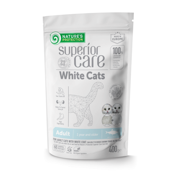 NATURE'S PROTECTION SUPERIOR CARE dry grain free pet food with herring for adult all breed cats with white coat 400 g